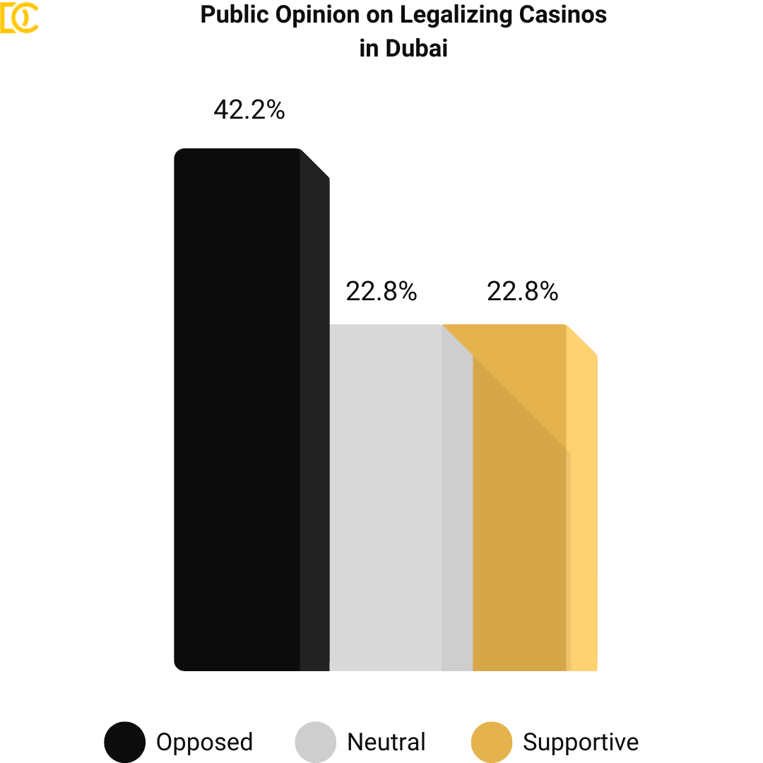 42.2% of participants expressed opposition to the idea of legal casinos in Dubai, citing concerns about the potential clash between Emirati culture and the gambling scene.
